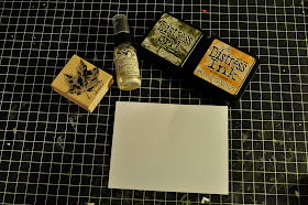Allow to dry. The stamped image won't be clear at first, but as the inks and mist work together the stamped image will start to stand out. (This technique has to be done using Distress Inks because they are water soluble so they react to water.)